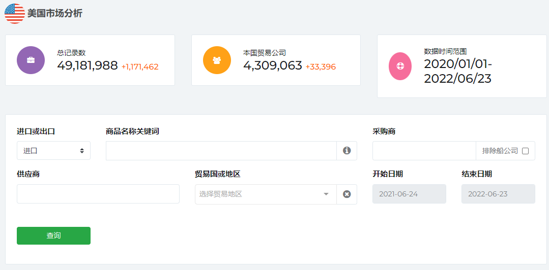 出口制造商可以通过美国海关进口数据,分析某一产品的美国市场需求量、掌握全美国历史至今的有过进口记录的采购商名单,掌握全球出口美国供应商、分析某一美国采购商的全球供应链,找到采购商的决策人以及联系方式。对于物流货代企业,更容易的分析美国各港口的进口情况以入全球物流链路。