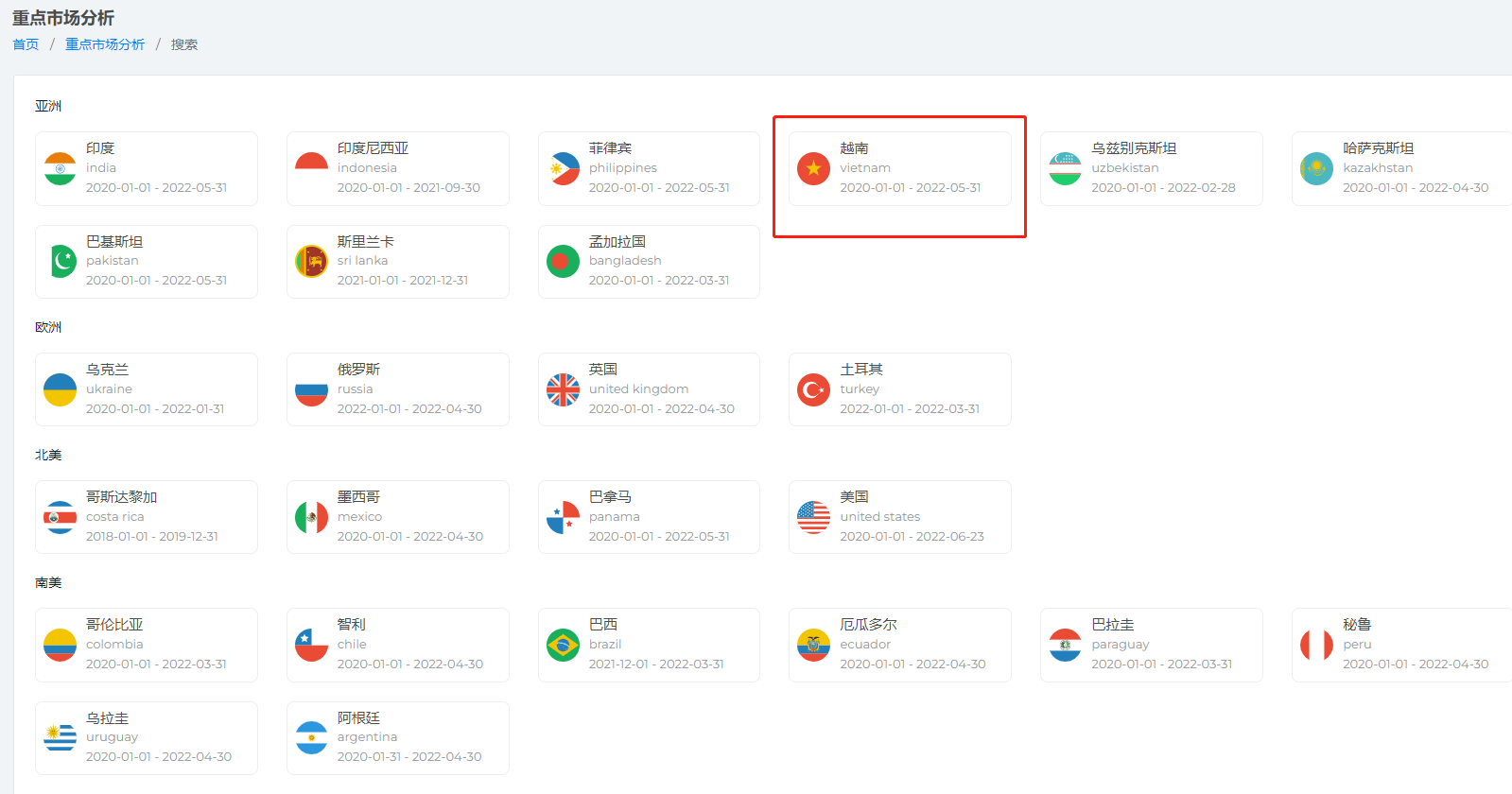 想了越南的贸易伙伴,可以点击贸易地区分析: