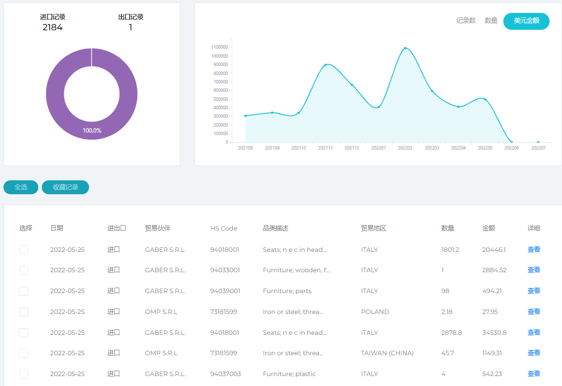 加入纽佰德数据三年服务计划:海关数据任意查询、多种维度分析报表在线生成、查询结果下载到本地excel文件,查找采购商决策人经验证的邮箱。