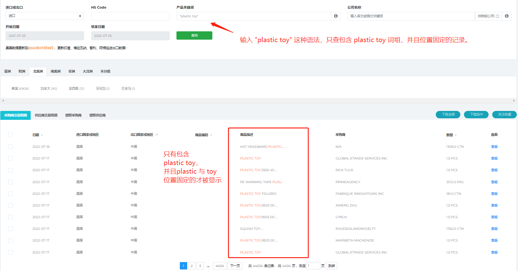 海关数据查询支持高级语法查询功能,根据不同的语法组合,帮助用户更精准查询数据。