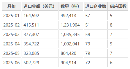 从表中可见,2 月和 6 月为主要增长节点,分别贡献了全期约 20% 与 24% 的进口金额,反映出电子制造和打印设备行业在春节后及季度末的集中采购特征。